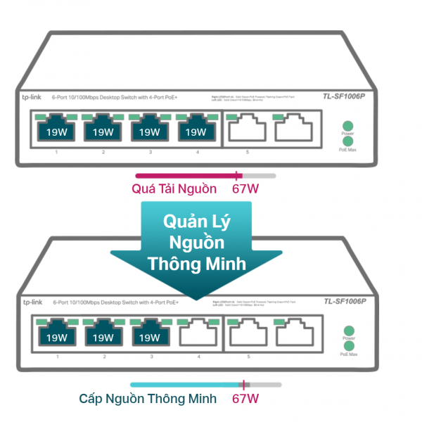 • Cấp nguồn POE lên đến 67 W cho tất cả các cổng POE*